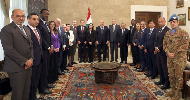 Le président de la République, le général Joseph Aoun, a reçu une délégation de diplomates et de représentants des missions des pays membres du Conseil de sécurité de l’ONU en visite au Liban.